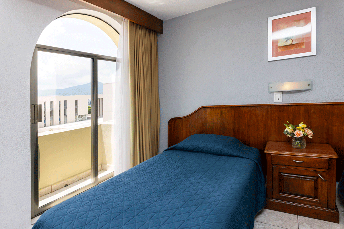 Ideal para pequeños grupos de amigos o familias. Esta habitación cuenta con una cama matrimonial y una cama individual, junto con todas las comodidades estándar como televisión por cable, Wi-Fi, y baño privado.